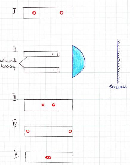 Gdy na ścianie pojawiły się plamki światła, takie jak na rysunku IV, to soczewka była oddalona od ściany A/B/C/D.