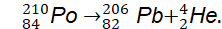 Polon-210, będący wynikiem tego drugiego rozpadu beta, ulega ostatecznie rozpadowi alfa, który jest reakcją jądrową, podczas której emitowana jest cząstka α (jądro helu). Ogólny zapis rozpadu alfa wygląda tak: