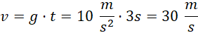 Podstawiamy wartości do wzoru opisującego prędkość w ruchu jednostajnie przyspieszonym, gdzie przyspieszenie ma charakter jest grawitacyjny.