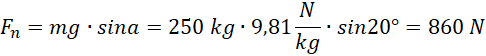 Siła naprężenia jest równa składowej siły grawitacji równoległej do równi.