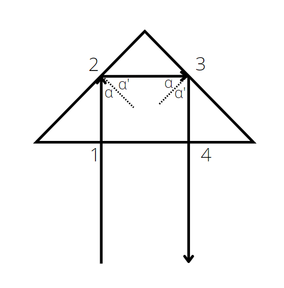Zaznacz w punktach 2 i 3 kąt padania i odbicia.