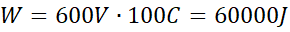 Na każdy 1 C ładunku przypada 600 J energii. Łączna energia wynosi 60000 J.