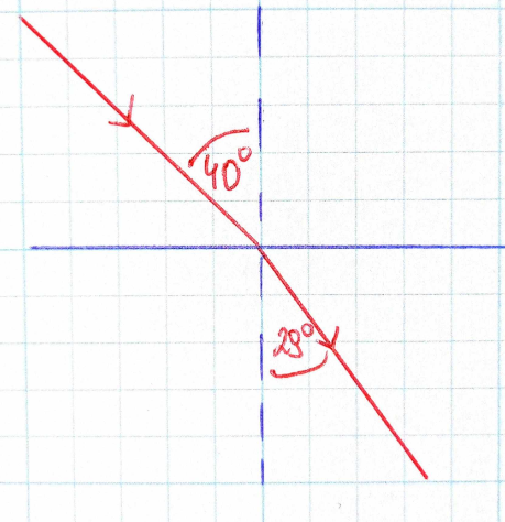 W tym zadaniu narysuj, jak załamie się promień światła, na podstawie użycia kątomierza i podręcznika (s.261).