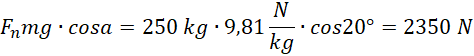 Siła nacisku jest równa składowej siły grawitacji prostopadłej do równi.