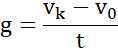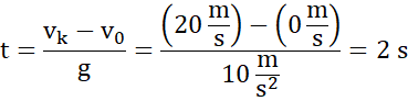 Aby znaleźć czas lotu kamyka, korzystamy ze wzoru na przyspieszenie w ruchu jednostajnie przyspieszonym i przekształcamy go tak, aby t zostało po lewej stornie, a reszta równania po prawej.