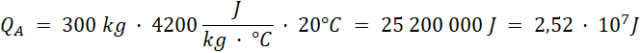 · potrzebną do podgrzania wanny wody (300 kg) o 20°C (A)