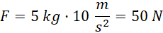 Siła przyciągania to iloczyn masy ciała (tu 5 kg) i wartości przyspieszenia ziemskiego (10 ).