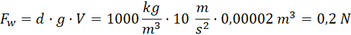 Najpierw ustal jednostki tak, by odpowiadały jednostkom, z których składa się niuton. Będzie to więc kilogram, metr i sekunda. Siła wyporu to iloczyn gęstości cieczy, w której zanurzone jest ciało, przyspieszenia grawitacyjnego i objętości wypartej cieczy.