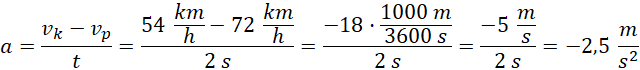 Odpowiedź: przyspieszenie pojazdu wynosi —2,5 .