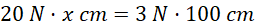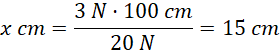 To zadanie można rozwiązać metodą proporcji. Jeśli działając siłą 20 N sprężyna wydłuży się o 1 m=100 cm, to działając siłą 3 N, otrzymamy poszukiwane wydłużenie. Zapisujemy więc: