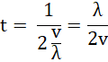 Czas, w jakim spławik przemieści się z doliny fali na jej grzbiet, jest równy połowie okresu. Okres jest odwrotnością częstotliwości. Częstotliwość możemy obliczyć, przekształcając odpowiednio wzór na prędkość fali.