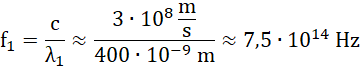 Oblicz częstotliwość światła, jeśli jego fale mają długość 400 nm i 700 nm.