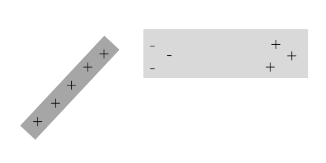Narysuj dodatnio naładowaną pałeczkę szklaną zbliżoną do kawałka folii aluminiowej i rozkład ładunków w folii.