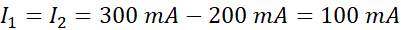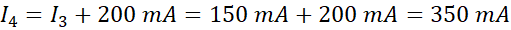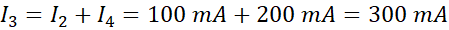Obliczamy wartości natężeń, korzystając z pierwszego prawa Kirchhoffa oraz właściwości natężenia prądu w połączeniu szeregowym – przez całą gałąź płynie prąd o takim samym natężeniu. Sprawdzamy, z której gałęzi prąd wpływa do węzła, a którymi wypływa.