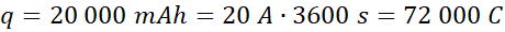 Ilość ładunku obliczamy zakładając, że powerbank jest pełny i cały ładunek na nim zgromadzony przepłynie do baterii laptopa. Zamieniamy jednostkę na jednostki w układzie SI i otrzymujemy wynik w kulombach.