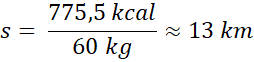 Na początku obliczamy energię uzyskaną z paczki czipsów mnożąc jej wagę razy wartość energetyczną. Następnie przyrównujemy tę energię do energii spalanej przez człowieka w czasie biegu i przekształcamy wzór.
