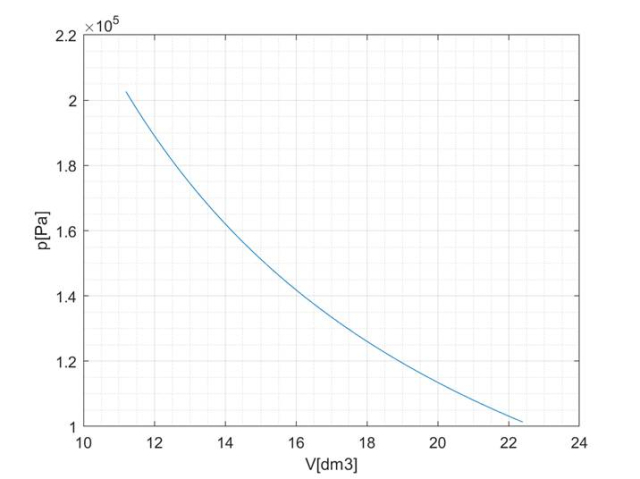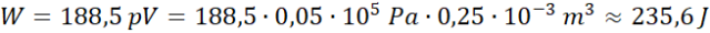 Pracę możemy obliczyć za pomocą metody graficznej – obliczając pole pod wykresem zależności p od V. Przybliżona ilość kratek – 188,5.