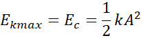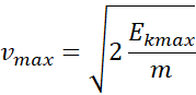Energia kinetyczna jest maksymalna, gdy jej wartość jest równa energii całkowitej. Prędkość maksymalną obliczamy, przekształcając wzór na energię kinetyczną maksymalną.