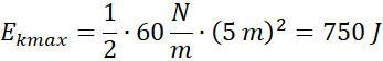 Oblicz maksymalna prędkość i maksymalna energia kinetyczna człowieka o masie 60 kg, który na długiej elastycznej porusza się w pionie ruchem drgającym o amplitudzie 5 m? Stała sprężystości liny .