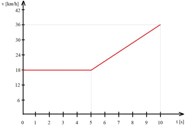 Wykres: ruch jednostajny jest reprezentowany przez prostą poziomą, natomiast ruch jednostajnie przyspieszony przez prostą wyznaczoną od prędkości