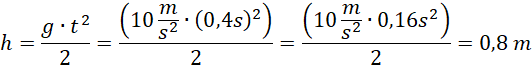 Wysokość liczymy ze wzoru na drogę w ruchu jednostajnie przyspieszonym. Czas tuż przed uderzeniem w ziemię liczymy, mnożąc przyspieszenie ziemskie razy czas spadania piłki.
