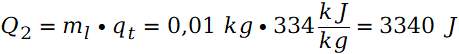 Ciepło pobrane przez lód do całkowitego stopienia się: