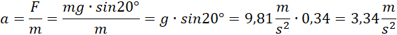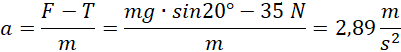 Siła wprawiająca ciało w ruch jest składową siłą grawitacji równoległą do stoku, zgodnie z II ZDN przyspieszenie jest równe iloczynowi tej siły i masy narciarza, w przypadku, gdy uwzględniamy tarcie, odejmujmy jego wartość od wartości siły. Współczynnik tarcia kinetycznego jest iloczynem siły tarcia i siły ciężaru narciarza.