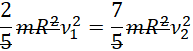 Zapisujemy równość energii kinetycznych w obu przypadkach i rozpisujemy wzory. Wyznaczamy momenty bezwładności i szybkości kątowe. Nie zapominamy o zastosowaniu twierdzenia Steinera dla przesuniętej osi względem osi symetrii kuli. Otrzymany wzór przekształcamy do jak najprostszej postaci, skracając odpowiednie wielkości i otrzymujemy szukaną zależność.