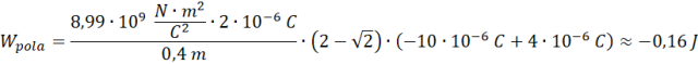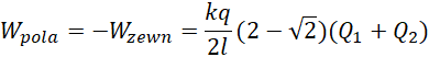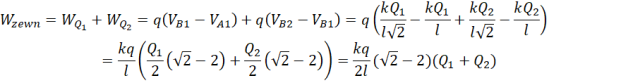 Oblicz, jaka praca została wykonana przez siłę pola wytworzonego przez ładunki przedstawione na rysunku w podręczniku, gdy ładunek q przemieścił się z punktu A do B.