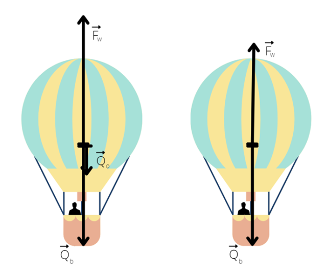 Ponieważ balon porusza się ruchem jednostajnym, spełniona jest I zasada dynamiki Newtona. Oznacza to, że wypadkowa sił musi równać się 0. Z tego wynika, że po wyrzuceniu balastu siła wyporu się zmniejszyła.