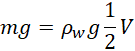 Zapisz prawo Archimedesa dwa dwóch przypadków: gdy piłka unosi się bezwładnie na powierzchni i gdy jest przytrzymywana przez siłę zewnętrzną. Następnie z pierwszego przypadku wyznacz wzór na objętość piłki i wstaw go do drugiej zależności.