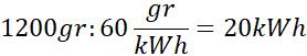 Skoro wiadomo, że 1 kWh to 60 gr to: