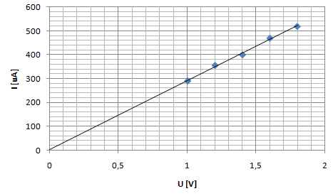 Aby sporządzić taki wykres, spójrz na natężenia i zastanów się, jaki minimalny i maksymalny zakres przyjąć oraz, co ile sporządzić podziałkę. To samo zrób z napięciem. Zaznacz punkty.