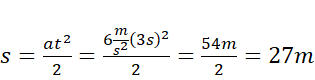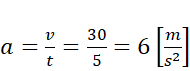 Oblicz przyspieszenie samochodu jako iloraz prędkości i czasu, skorzystaj z wartości zaznaczonych na wykresie. Drogę po 3 sekundach oblicz jako połowę iloczynu przyspieszenia i kwadratu czasu.