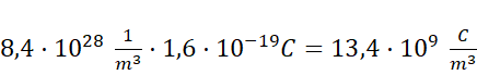Oblicz ładunek elektryczny wszystkich elektronów swobodnych w jednym metrze sześciennym przewodnika (pomnóż liczbę ładunków przez ich wartość) i czas, w którym przepłyną one przez koniec przewodnika (ze wzoru na natężenie.). Oblicz prędkość jako iloraz drogi, jaką przebędzie prąd (podziel objętość, w jakiej liczyłeś liczbę elektronów przez przekrój przewodnika) i czasu.