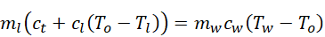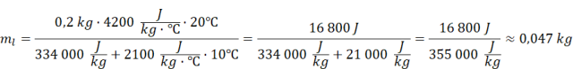 Zgodnie z bilansem cieplnym, ciepło oddane przez wodę podczas jej ochładzania jest równe sumie ciepeł potrzebnego do ogrzania lodu do temperatury topnienia oraz ciepła niezbędnego do stopienia lodu. Maksymalna ilość lodu, jaka może ulec stopieniu będzie możliwa, gdy woda ochłodzi się do temperatury 0°C.