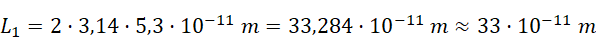 – masa cząstki. Z tablic fizycznych odczytaj wartość stałej Plancka, a następnie wyznacz długość fali de Broglie’a. Następnie oblicz długość orbity ze wzoru na długość okręgu: