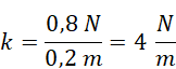 Wyznacz współczynnik sprężystości (k) na podstawie prawa Hooke’a. Wybierz dowolny punkt znajdujący się na wykresie. Jego pierwsza współrzędna odpowiada sile (