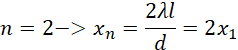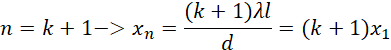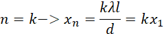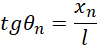 Z powyższego wynika, że odległość n-tego prążka od środkowego to: