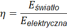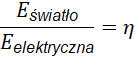 Sprawność lampy LED przedstaw jako stosunek energii emitowanej wiązki światła do energii dostarczanej przez prąd elektryczny: