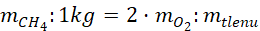 Teraz możesz obliczyć, ile tlenu jest potrzebne do spalenia 1 kg metanu. Z równania wynika, że na spalenie jednej cząsteczki metanu potrzeba dwóch cząsteczek tlenu.