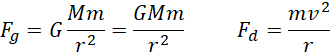 Siła grawitacji działa jako siła dośrodkowa, więc są sobie równe.