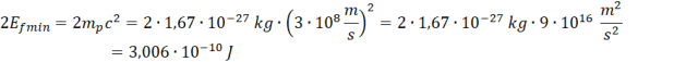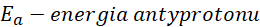 Proton i antyproton to takie same cząstki o innym ładunku, czyli ich masa, a co za tym idzie energia będą takie same: