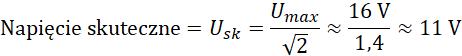 , gdzie Usk – napięcie skuteczne, Umax – napięcie maksymalne.