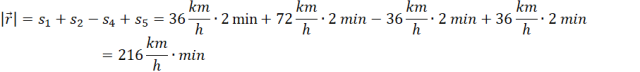 Aby obliczyć wartość średniej prędkości, dzielimy długość wektora przemieszczenia przez całkowity czas. Wartość wektora przemieszczenia obliczamy, dodając drogę przebytą zgodnie z osią x i odejmujemy drogę przebytą przeciwnie do niej.