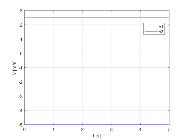 Na podstawie wzoru opisującego ruch jednostajny prostoliniowy znajdujemy i wyznaczamy wartości prędkości ciał i przedstawiamy dane na wykresie.