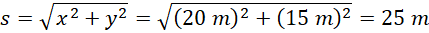 Drogę obliczamy, korzystając z twierdzenia Pitagorasa, odczytując długości przyprostokątnych z wykresu.