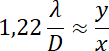 przy pomocy rysunku pomocniczego i wzoru wyrażającego zdolność rozdzielczą przyrządów optycznych.