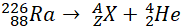Podaj równanie reakcji rozpadu 226Ra, w wyniku której wyemitowana zostaje cząstka helu.