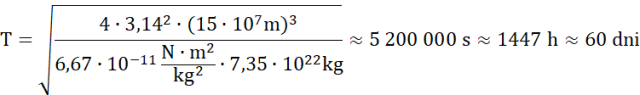 Policz, ile wynosił okres obiegu Księżyca wokół Ziemi na początku istnienia Układu Słonecznego.